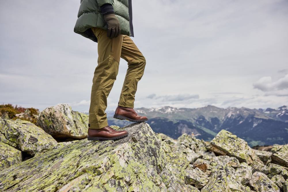 It was at 3,500 metres up the side of a snowbound Alpine valley that Crockett & Jones’ head of marketing, James Fox, found himself more pleasantly surprised than he had expected to be. There, to wear-trial a new pair of the boots that the English shoemaker is introducing as part of its autumn/winter 2025 collection, he discovered that they were, “extremely comfortable and extremely good in extreme conditions.” Move over, makers of the more typical clumpy, lumpy specialist hiking boot, with neon accents, Velcro straps and breaking-in blisters. Fox’s cosy feet were not just down to Crockett & Jones’ handmade, Goodyearwelted construction, nor to the boots’ Vibram cleated sole, bellows tongue, reverse storm welt or their insulating, water-repelling membrane layer between the outer leather and the lining. Rather, it was due to the brand’s first use of a side leather made waterproof by the application of a special solution during the tanning process — one that consequently becomes part of the leather rather than sits on top of it, as wax does on a newly polished pair of dress shoes. “That means that even if you scratch the surface of the leather, your boots remain waterproof,” explains Fox.