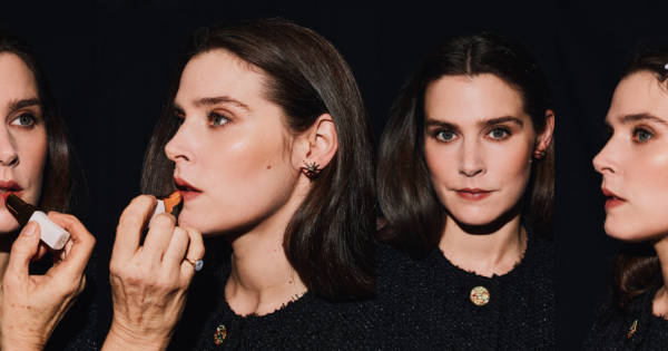 For the complexion, Mary also used Les Beiges Touche de Teint Water-Fresh Complexion to create a fresh, skin-like base. Under the eyes, she brightened using Ultra Le Teint Correcteur, before introducing warmth and soft contour with Les Beiges Bronzing Crème in Soleil Tan Bronze, blending it into the cheeks for a subtle sculpt and hint of blush. To create a “flushed-from-within glow”, she used Baume Essentiel in Cute, slightly under the eye and across the cheeks. For the lips, Mary layered Rouge Allure Velvet in Intuitive, then added Rouge Coco Baume in Honey Bliss to the centre of the bottom lip for a touch of shine and dimension.
