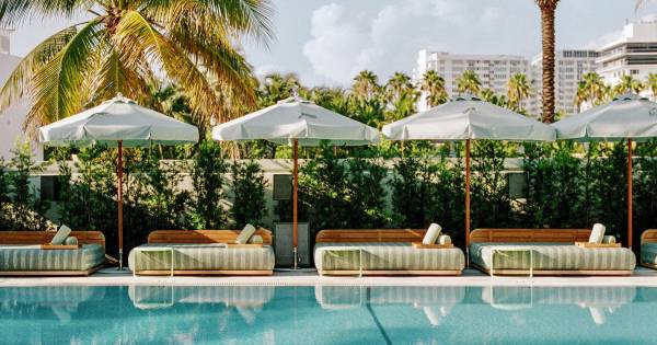 When a $100 million budget and expert designers come together, the results should sparkle – and The Shelborne By Proper on South Beach Miami does just that following its ADC & Tuneu-led renovation. Once a little tired from its Sinatra-and-Marilyn heyday, the refreshed design balances eclectic heritage with modern Miami. Curved sofas, soft pinks and oranges, and clean marble and wood create an effervescent, tropical mood. Outside, ice-blue umbrellas and mint-striped sunbeds complete poolside days in utmost style.